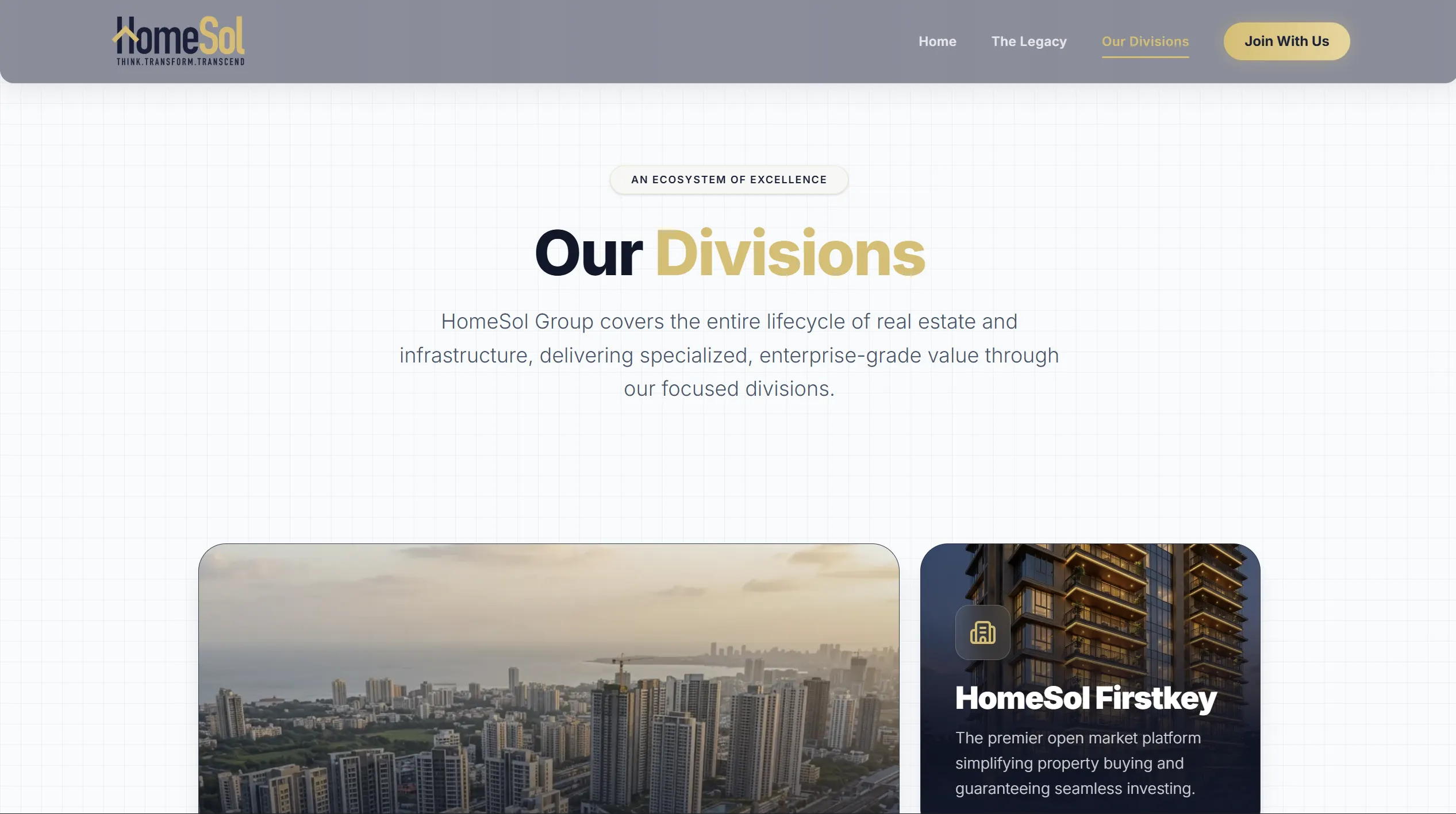 - Structured navigation for key divisions like Inframart, Tech, and Finance.